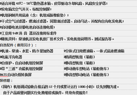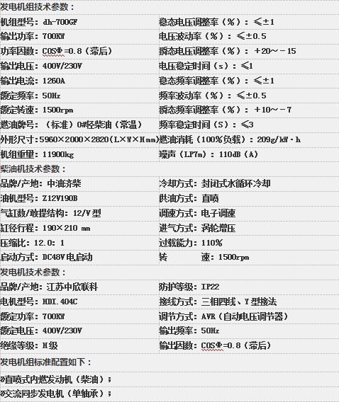 常用山東濟(jì)柴系列柴油發(fā)電機(jī)組技術(shù)規(guī)格參數(shù);